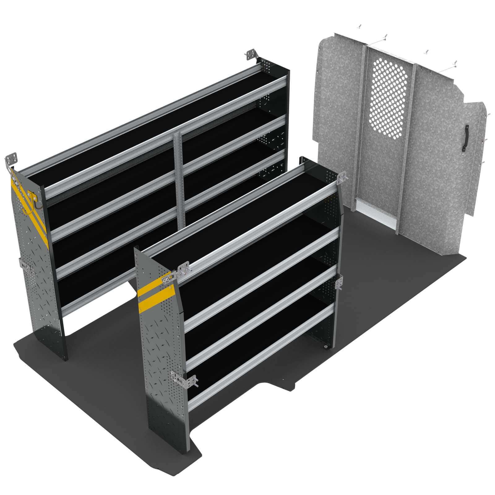 - N5 Series Cargo Van Shelving, 96" Wide, 4 Trays - N5-RS96-4 Steel Shelving Unit for High Roof Van, 16" x 62" x 96". Model: N5-RS96-4
