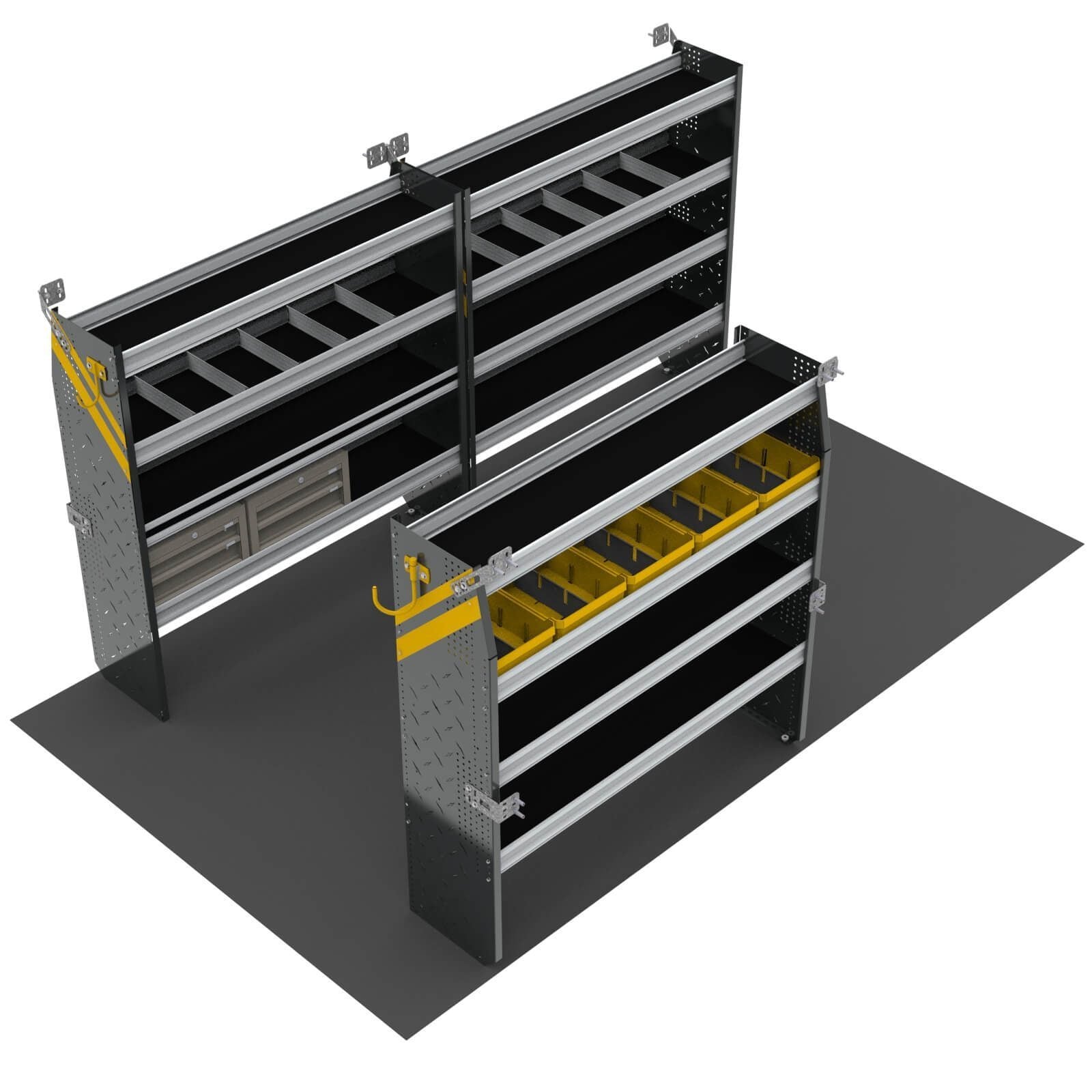 - N5 Series Cargo Van Shelving, 60" Wide, 4 Trays - N5-RS60-4 Steel Shelving Unit for High Roof Van, 16" x 62" x 60". Model: N5-RS60-4